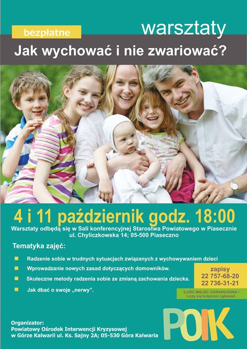 Powiatowy Ośrodek Interwencji Kryzysowej zaprasza na warsztaty dla rodziców i dzieci.