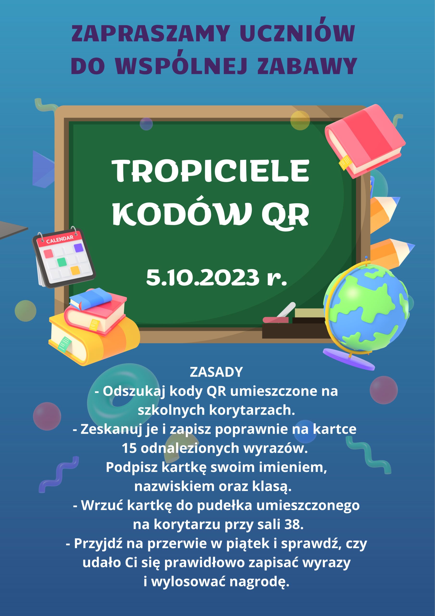 Szczególnie zachęcamy uczniów do wspólnej zabawy w tropicieli kodów QR. Więcej informacji na plakatach.