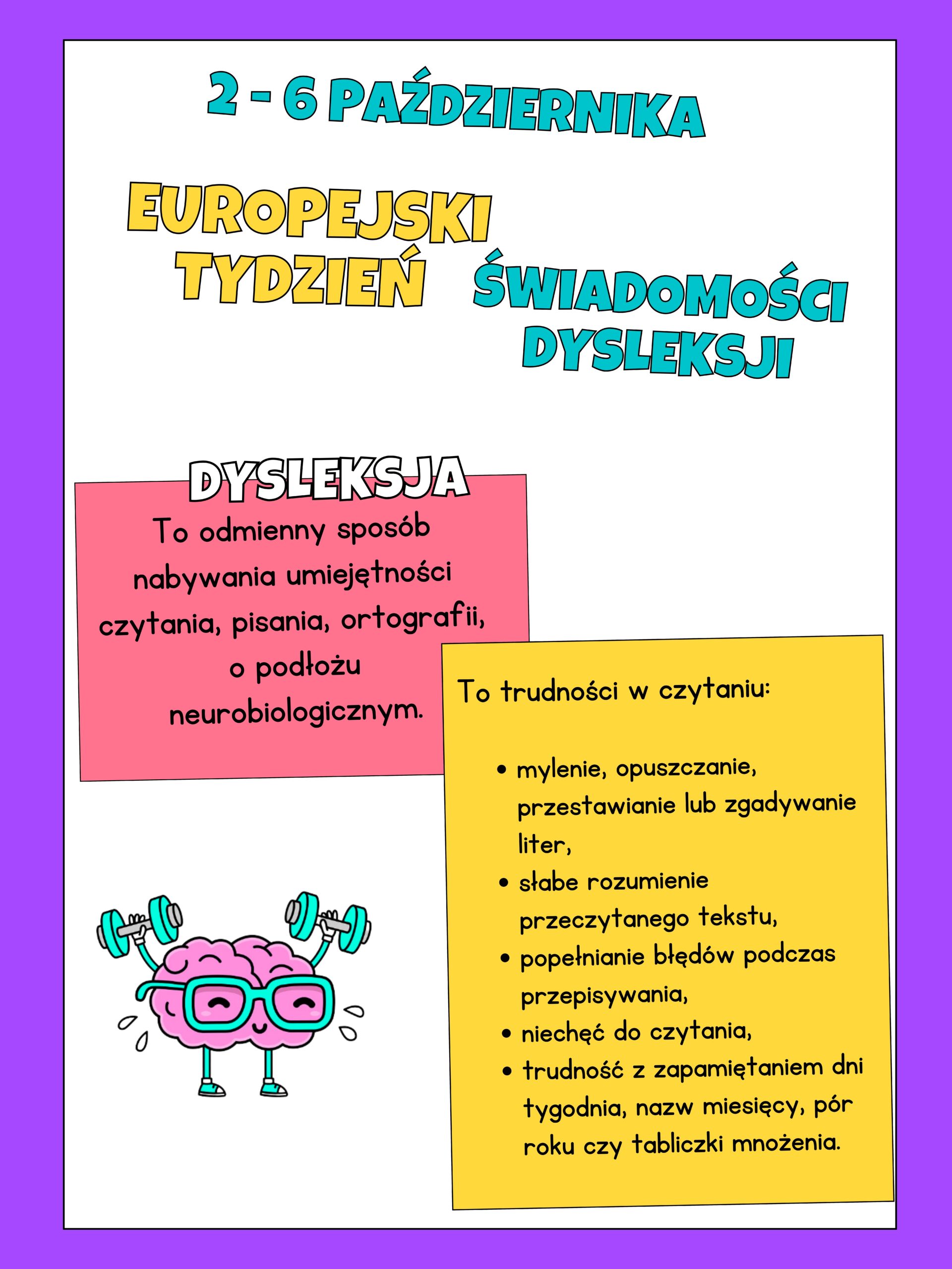 Z tego względu zapraszamy do śledzenia strony szkoły, na której pojawią się informacje na temat dysleksji.