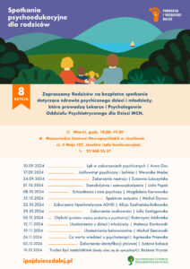 Zachęcamy Państwa do wzięcia udziału w spotkaniach projektu Psychoedukacja dla Rodziców prowadzonego przez lekarzy i psychologów Oddziału Psychiatrycznego dla Dzieci Mazowieckiego Centrum Neuropsychiatrii w Józefowie.