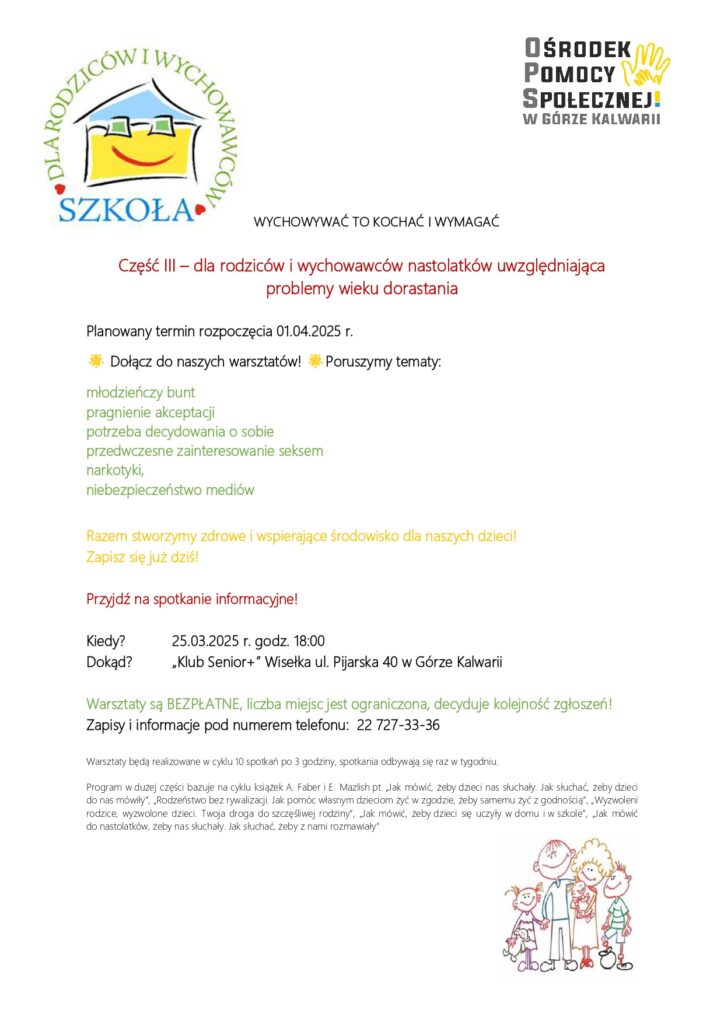 „Psychoedukacja dla rodziców” – zaproszenie na spotkania
